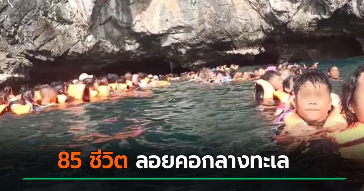 ระทึก ! 85 ชีวิตลอยคอ เกาะแขนกันกว่าครึ่ง ชม. หลังเชือกขาด เรือถูกซัดไปไกล