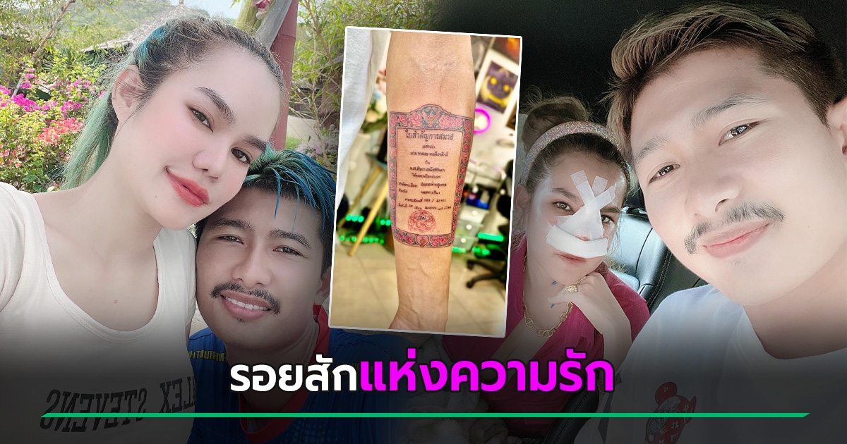 แม่น้ำหนึ่ง ยิ้มแก้มปริ สามีคลั่งรักสักทะเบียนสมรสไว้ที่แขน ประกาศให้โลกรู้ชัด ๆ