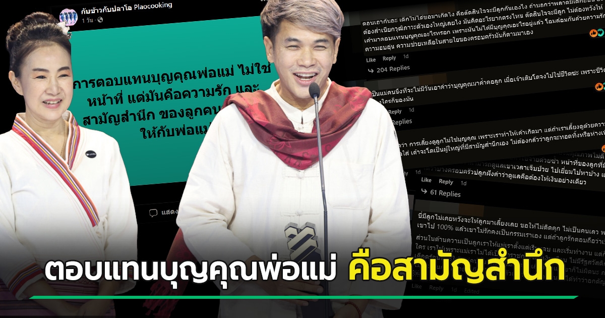กับข้าวกับปลาโอ ลั่นดราม่า ตอบแทนพ่อแม่ คือสามัญสำนึก-แขวนรูปคนอื่นให้ด่า ตีกันยับ