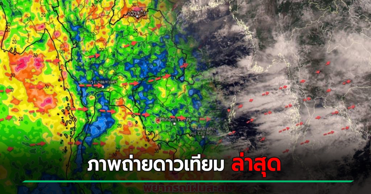 เปิดภาพดาวเทียมเมฆฝนปกคลุมหนาแน่น เตือนพื้นที่มรสุมแรงขึ้น หลัง 24 มิ.ย.
