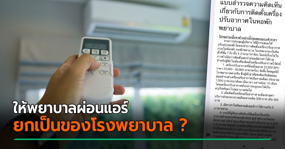 ได้เหรอ ! รพ. ดัง มีแนวคิดติดแอร์พอพัก ให้ จนท. ผ่อนเอง แต่บังคับยกให้เป็นครุภัณฑ์