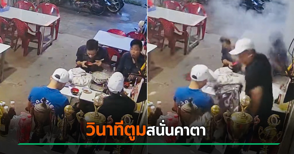 อุทาหรณ์สายชาบู ! นั่งกินอยู่ดี ๆ แก๊สกระป๋องระเบิดใส่หน้าสนั่นกลางร้าน