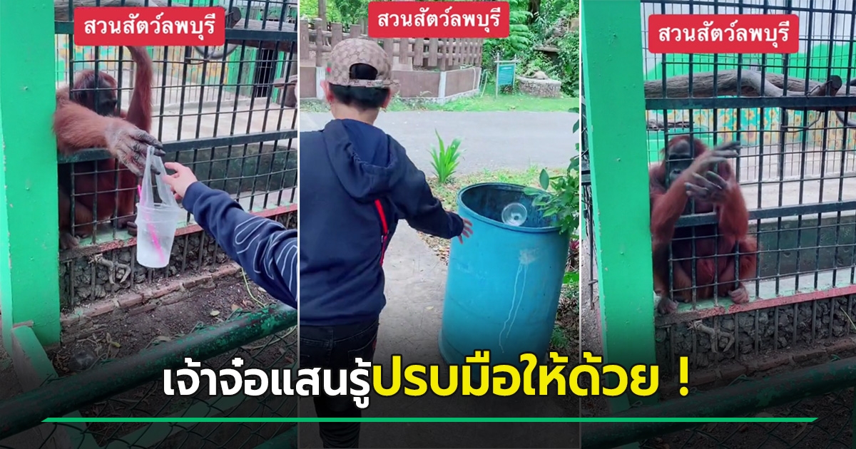 สุดทึ่ง ! เจ้าลิงจ๋อแสนรู้หยิบขยะหน้ากรง ส่งให้นักท่องเที่ยวฝากทิ้งถังขยะด้วย