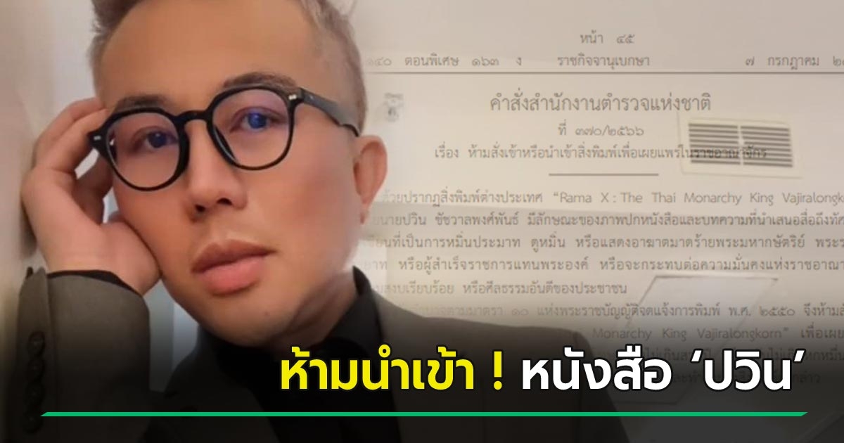 สั่งห้ามนำเข้าหนังสือ ปวิน เผยแพร่ในราชอาณาจักร ! หมิ่นเบื้องสูง-กระทบศีลธรรม