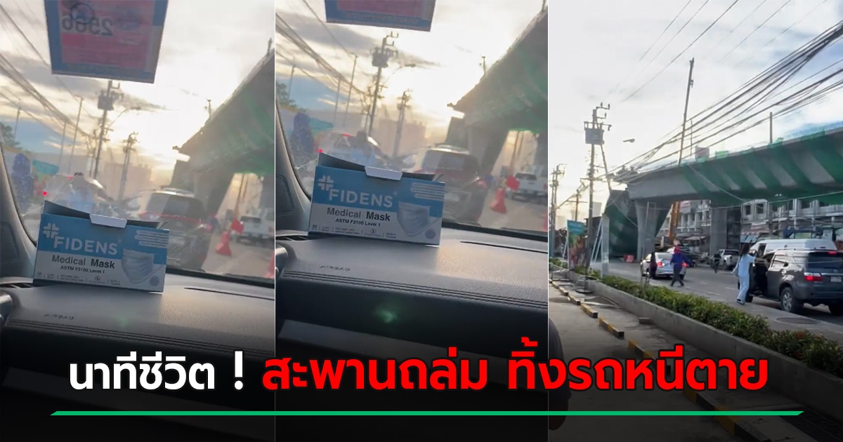 นาทีชีวิต ! สะพานลาดกระบังถล่มต่อหน้า สาวประคองสติทิ้งรถวิ่งหนีตาย
