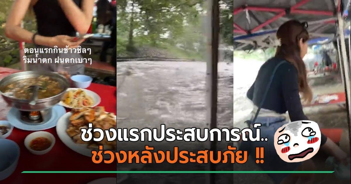สาวรีวิว ! จากนักท่องเที่ยว สู่ผู้ประสบภัย กินอาหารริมน้ำอยู่ดี ๆ ต้องวิ่งหนีน้ำป่า