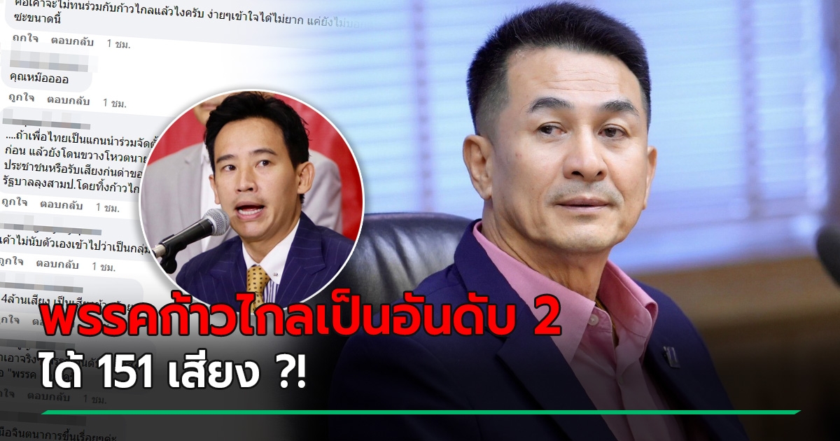 เปิดเมนต์ชาวเน็ต เจอตรรกะ หมอชลน่าน ลั่น ก้าวไกล เป็นอันดับ 2 ไม่ใช่ 1 ?!