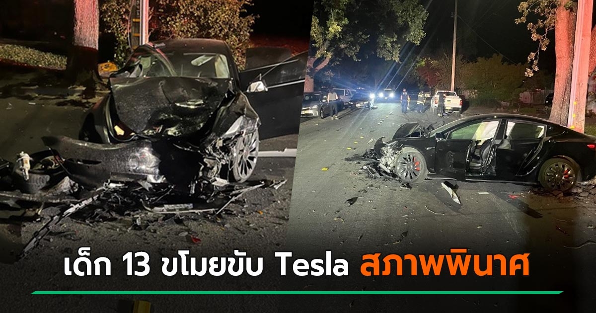เด็กวัย 13 ขโมยรถ Tesla พ่อแม่มาขับเล่นกับเพื่อน ชนสนั่นพังยับ รถคนอื่นอีก 3 คัน