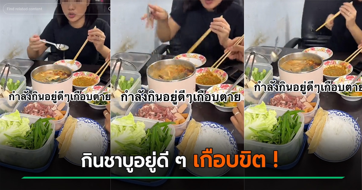 ไวรัลเตือนภัย สาวโซ้ยชาบูอยู่ดี ๆ เกือบขิต แค่เสี้ยววินาทีนี้ สะดุ้งจนช้อนกระเด็น