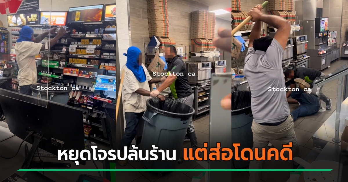 พนง. คว้าไม้ไล่ฟาดโจรบุกปล้น คนสะใจบทเรียนโจรแสบ สุดท้ายโดน ตร. สอบ