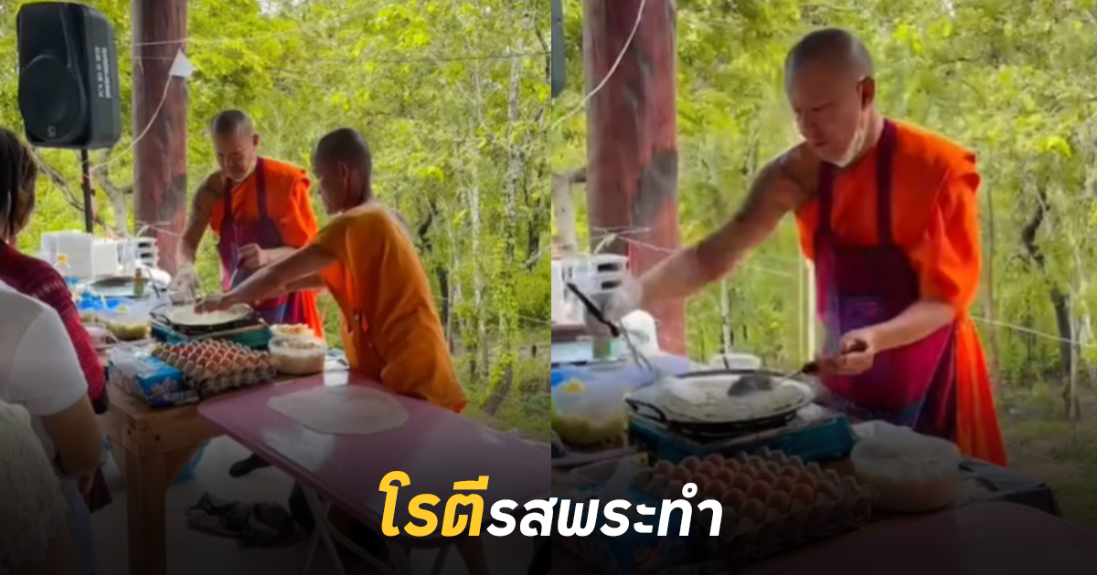 รสพระทำของจริง พระโชว์ฝีมือทำโรตี จนเหล่าญาติโยมต่อแถวเพียบ