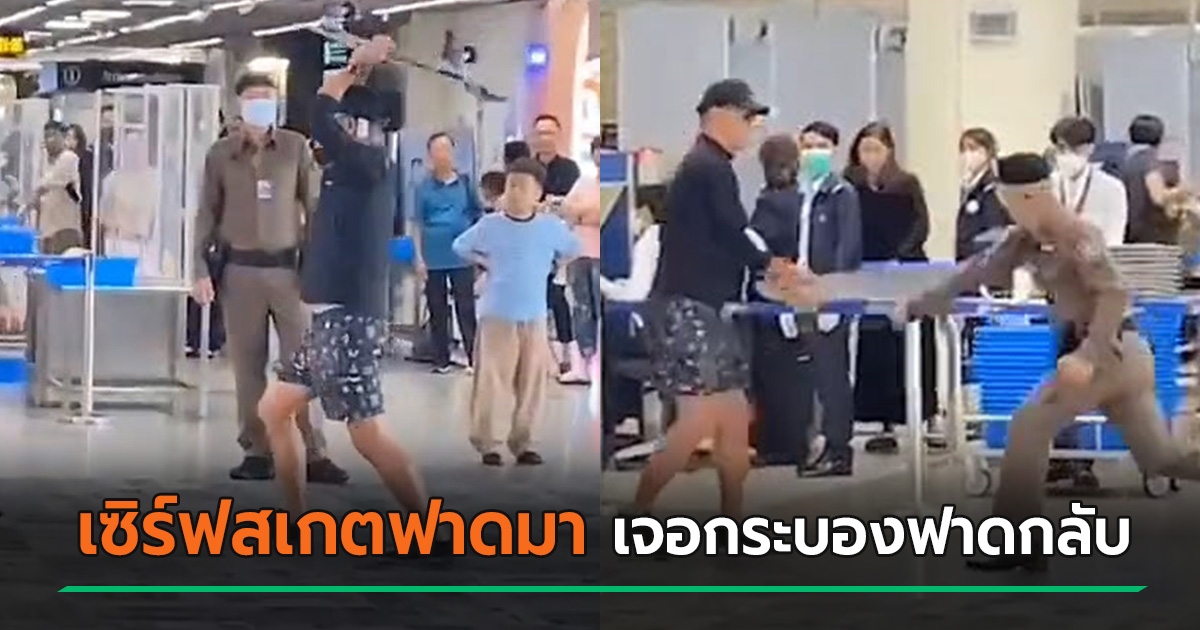 นาทีนัว นทท. ต่างชาติ จับเซิร์ฟสเกตฟาดตำรวจ เจอฟาดกลับด้วยกระบอง ดอนเมืองวุ่น !