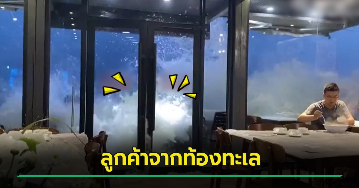 ร้านอาหารวิวทะเลระทึก คลื่นซัดน้ำทะลัก 2 สาวถูกพัดลอยมาหน้าประตู คนยังนั่งกินชิล
