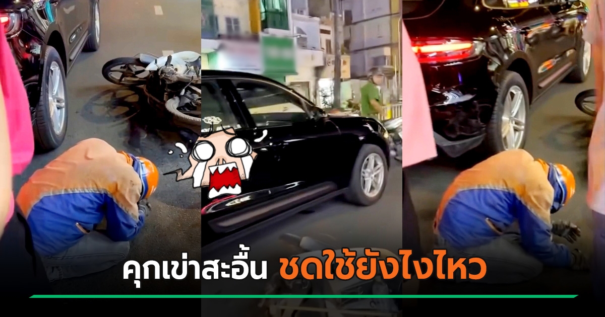 ไรเดอร์คุกเข่าสะอื้น ก้มดูมือถือจนเสยท้ายปอร์เช่ ช็อกไม่มีประกัน ชดใช้เกือบ 3 แสน