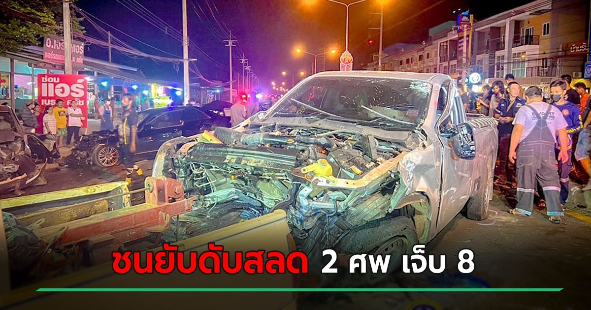 สลดกลางดึก อุบัติเหตุหมู่ รถชนกันยับ 6 คันรวด เจ็บ 8 ราย ดับ 2 ศพ เร่งเช็กต้นเหตุ