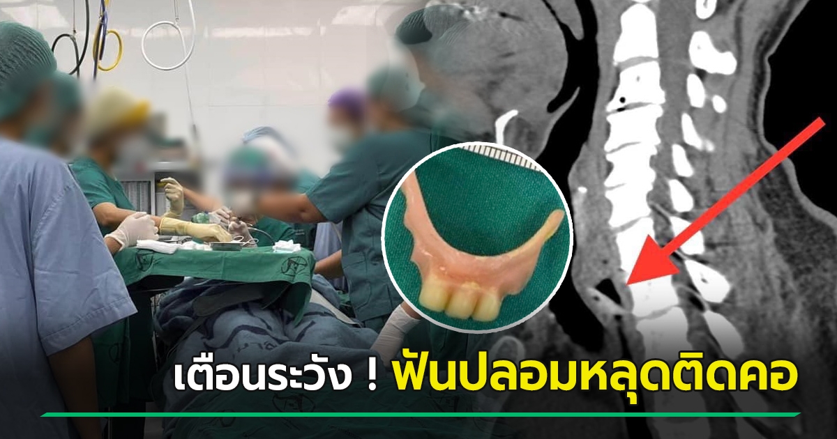 อุทาหรณ์เตือนระวัง ! ฟันปลอมหลวมหลุดติดคอ ระดมหมอ 5 คน ส่องกล้องดึงออก