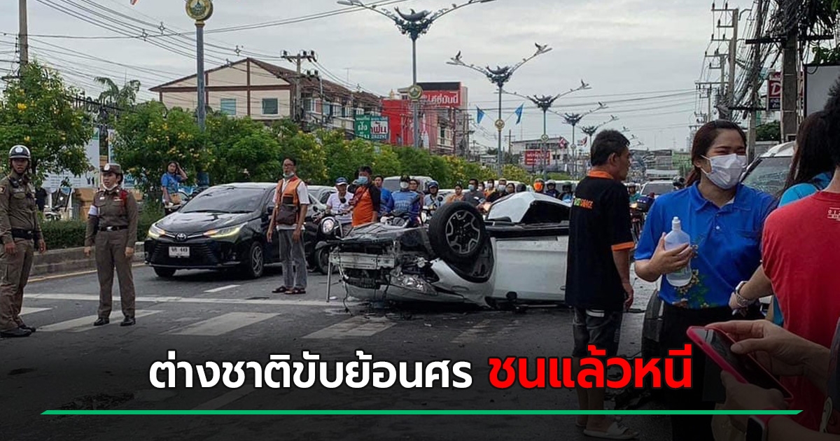 ต่างชาติชนแล้วหนี ซิ่งย้อนศรชนดะ 4 คันรวด รถตัวเองคว่ำหงายท้องเจ็บสาหัส คนอื่นเจ็บอีก 4