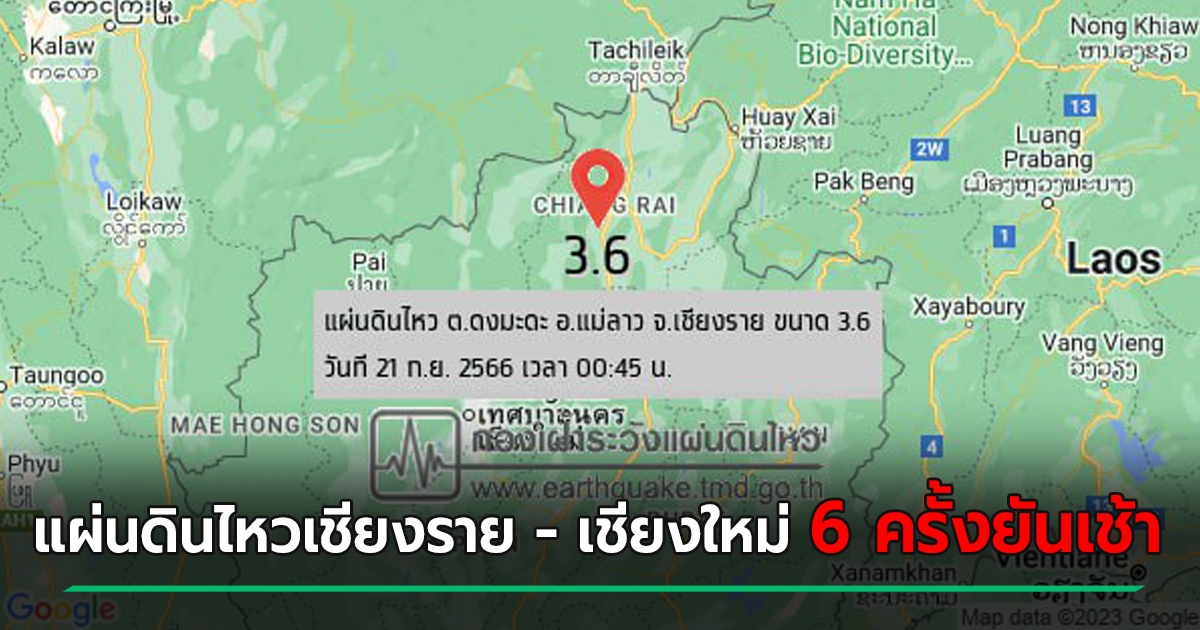 แผ่นดินไหวเชียงราย 5 ครั้งยันเช้า ขนาดสูงสุด 3.6 ชาวบ้านรู้ถึงแรงสั่น - เชียงใหม่อีก 1 ครั้ง