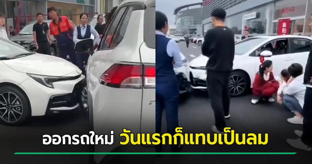 ป้ายแดงงามไส้ ยังไม่พ้นศูนย์ ชน 3 คันรวด สาวคนขับทรุดปล่อยโฮ พ้อโชคร้ายหนักมาก