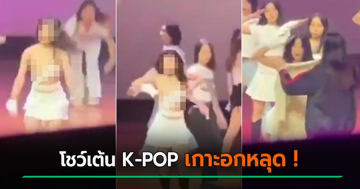 กลุ่มสาวโชว์เต้น K-POP สะดุ้งแรง คนหนึ่งเกาะอกหลุดเต้าโผล่ ยังโชว์สเต็ปต่อจนจบ