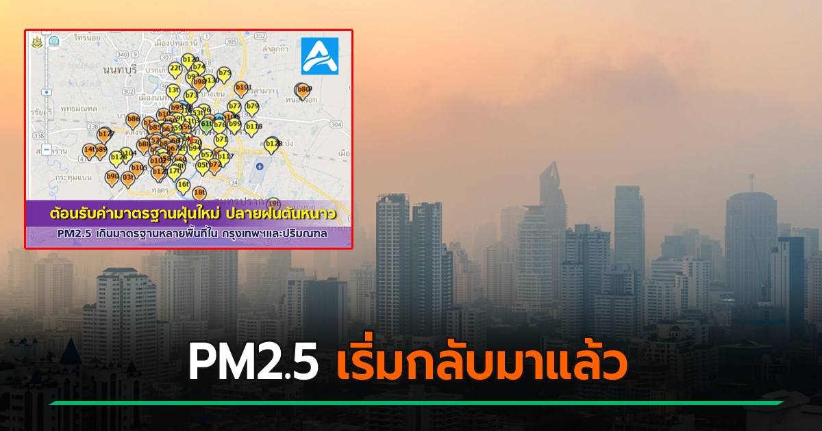 กรมควบคุมมลพิษ เผยค่าฝุ่น PM2.5 กลับมาแล้วก่อนเข้าหน้าหนาว ทั่วกรุงตอนนี้อยู่ระดับสีส้ม