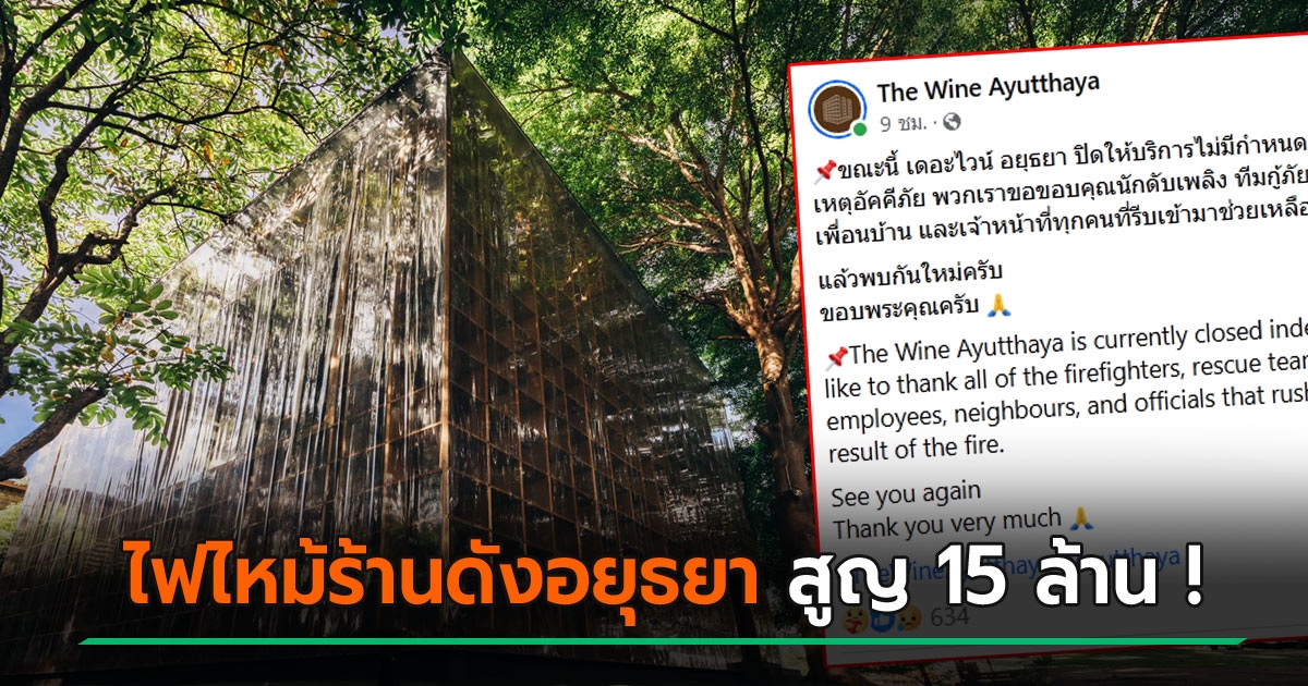 ร้านอาหารดังริมเจ้าพระยา The Wine ไฟไหม้วอดสูญ 15 ล้าน ขอปิดไร้กำหนด