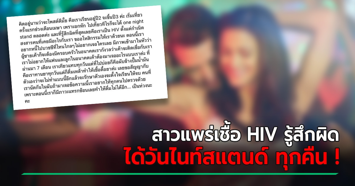 นศ. สำนึกผิด แพร่เชื้อ HIV ให้ท่านชาย ไปเที่ยวผับดังภาคอีสาน ได้วันไนท์สแตนด์ 7 เดือน