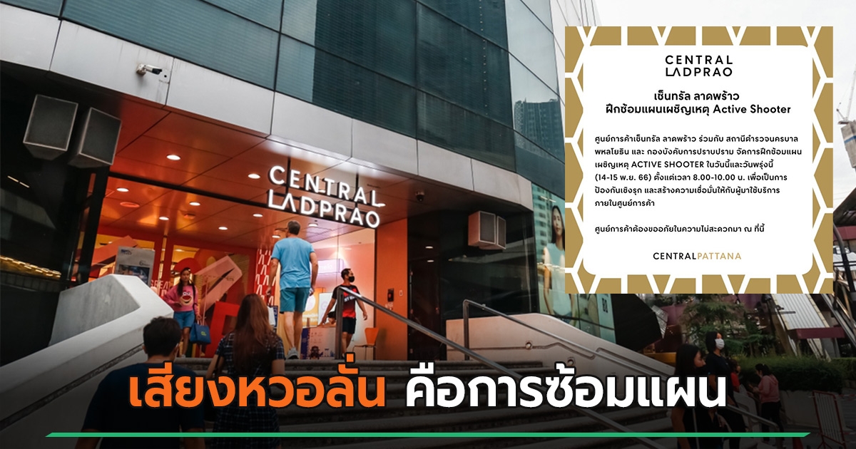 เซ็นทรัล ลาดพร้าว เผยเหตุเสียงดังหวอลั่นห้าง จนลูกค้ากลัว ชี้คือการซ้อมแผนเหตุก่อการร้าย