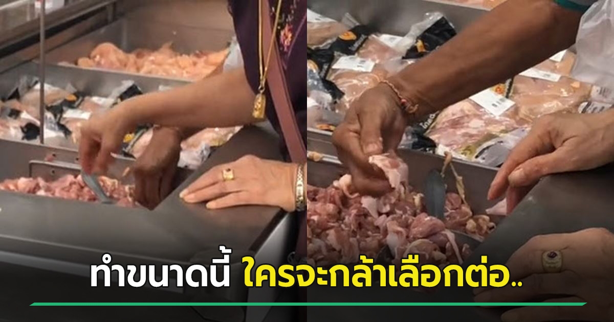 เดินซูเปอร์มาร์เกต เจอลุงกับป้ายืนช่วยกันเลือกเนื้อหมู อึ้งกับวิธีคัดสรร ทำอนามัยติดลบ