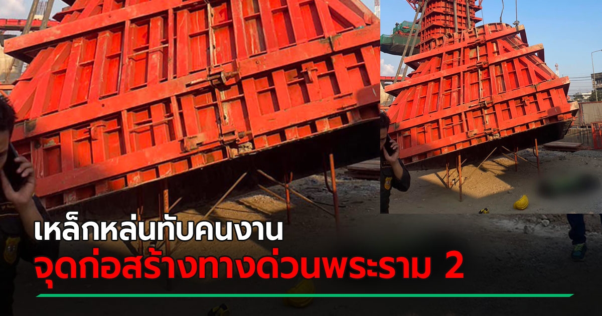 พระราม 2 เกิดเหตุอีก ! แท่งเหล็กก่อสร้างสลิงหลุด หล่นทับคนงานดับ