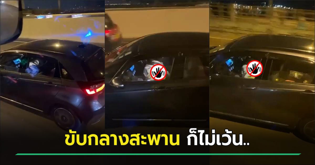 เก๋งขับแช่เลนกลางสะพาน พอแซงปุ๊บถึงกับผงะ เห็นสาวก้มโยกเกียร์หนุ่มคนขับเต็มตา