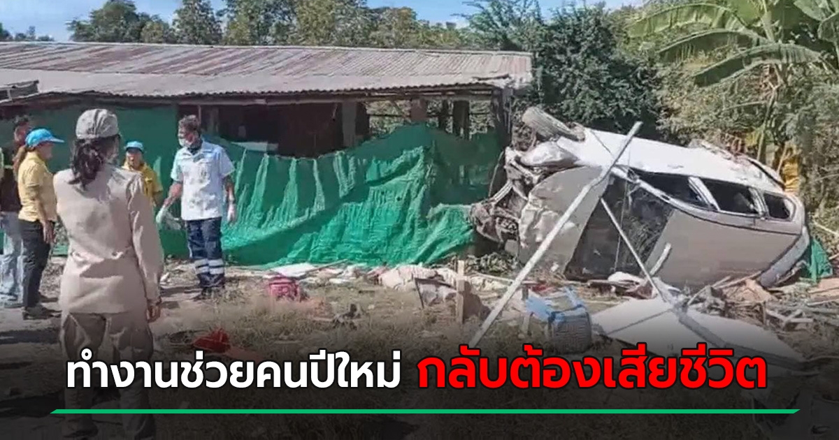 สาวหลับใน ขับเก๋งเสียหลัก ชนจุดบริการประชาชน ผู้ใหญ่บ้านช่วยงานปีใหม่ ต้องตายคาที่