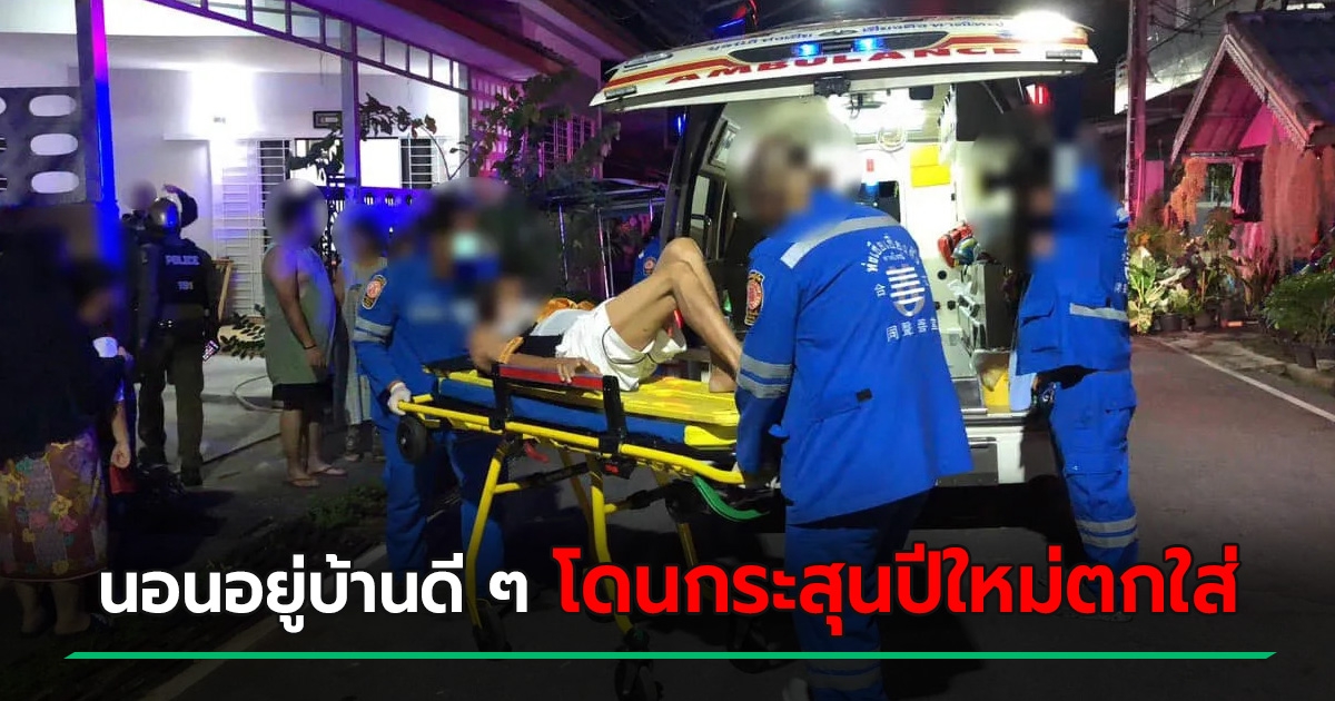 พ่อนอนอยู่บ้านดี ๆ เจอกระสุนที่คนยิงขึ้นฟ้า ตกทะลุหลังคารับปีใหม่ ลูกหลานตกใจรีบช่วย