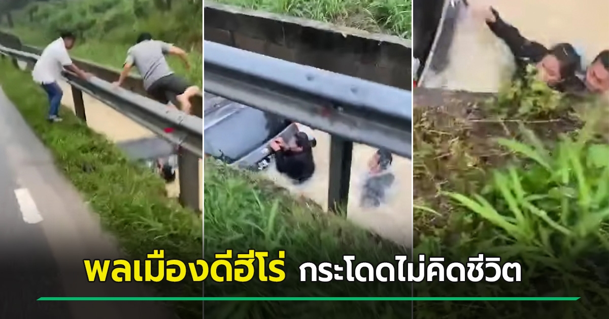 หญิงโดนน้ำซัดไปกับรถ ชายกระโดดไม่คิดชีวิต ช่วยได้ใน 5 วินาที คนลุ้นชะตากรรมฮีโร่