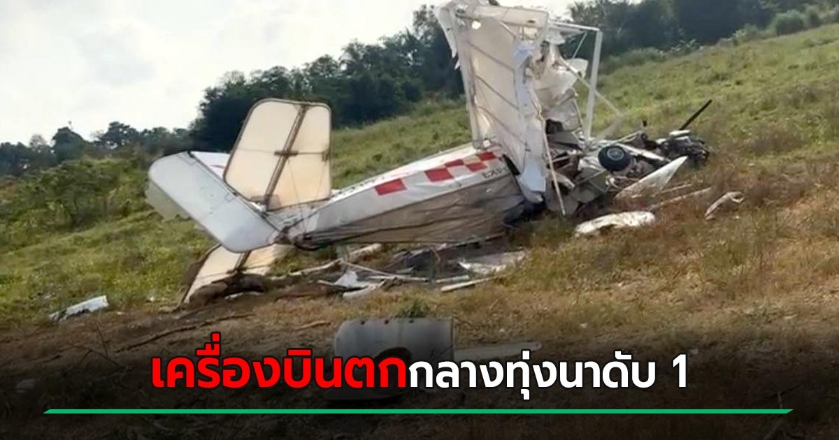 เครื่องบินเล็กตกกลางทุ่งนา ชาวต่างชาติดับ 1 เจ็บ 1 ชาวบ้านเล่านาทีระทึก เห็นเต็มตาเกิดระเบิด