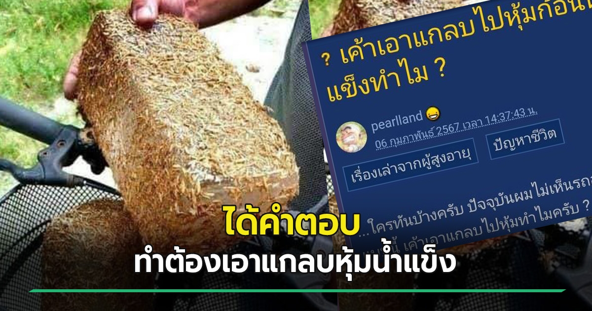หนุ่มสงสัย คนเอาแกลบไปหุ้มน้ำแข็งเพื่ออะไร ชาวเน็ตแซวยับ ใครเคยเห็นภาพนี้เป็น สว. แน่นอน