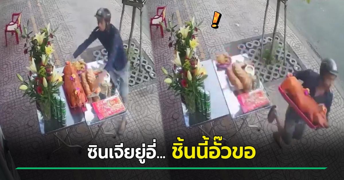 ไวรัลวันตรุษจีน โจรวิ่งราวหมูหันไหว้เจ้า เพิ่งเอามาตั้งโต๊ะหน้าบ้าน โฉบไปในพริบตา