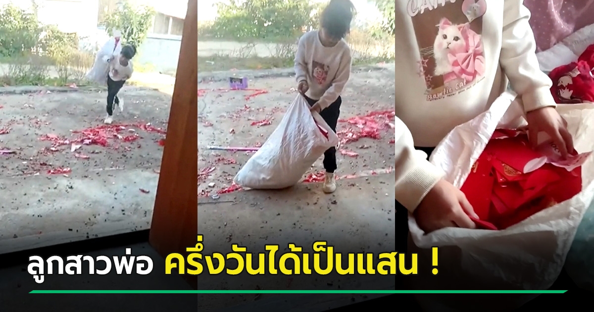พ่อตะลึง ลูกสาวกลับบ้าน เก็บซองเงินมาเต็มกระสอบ นับได้เป็นแสน ไปหามาจากไหน