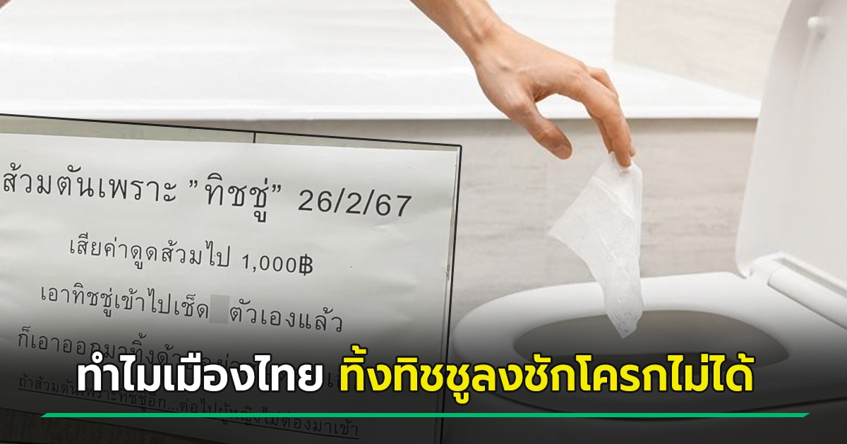 ตอบข้อสงสัย ทำไมเมืองไทย ทิ้งทิชชูลงชักโครกไม่ได้ หลังมีป้ายด่ากราด ทิ้งทิชชูสนั่นจนส้วมตัน !