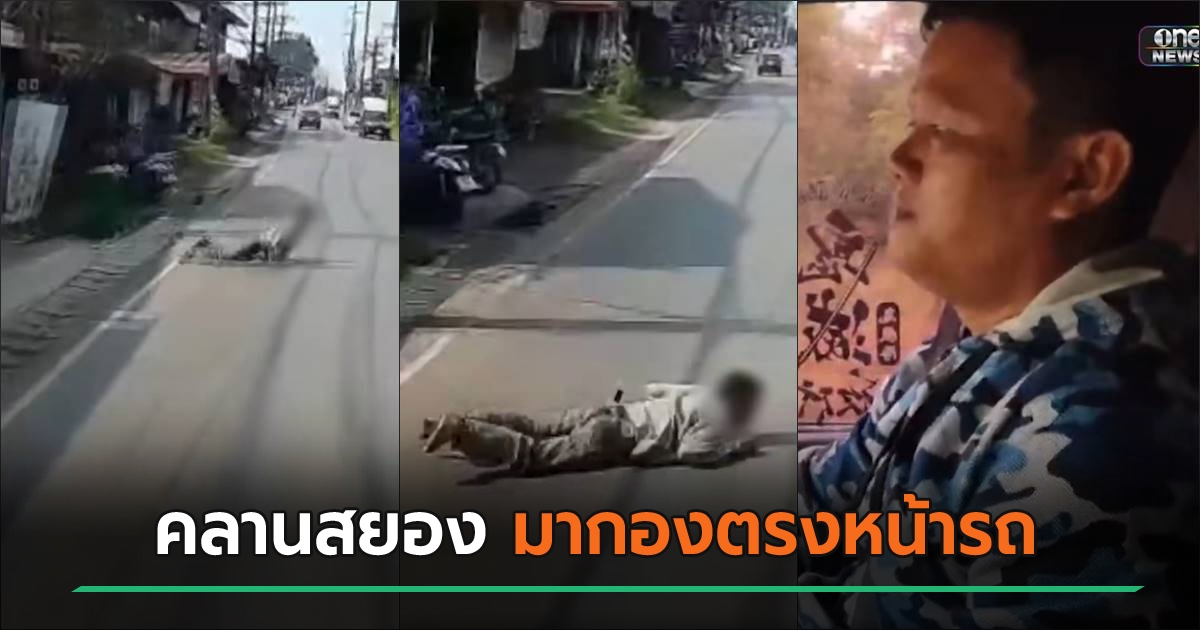หนุ่มคลานสยอง มากองตรงหน้า รถเกือบชนเข้าเต็ม ๆ แต่โชคดีเพราะคนขับมีตัวช่วยสำคัญ
