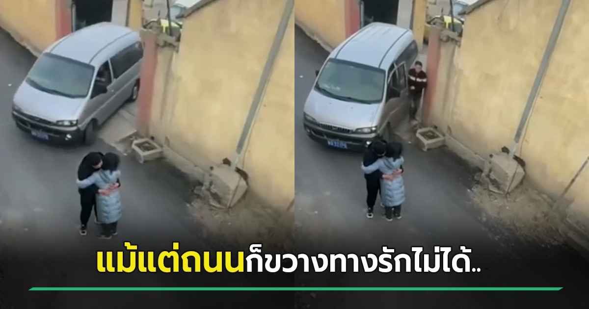 คู่รักขวางทางกอดกันกลางถนน คนขับรถมีวิธีรับมือที่คาดไม่ถึง คนแห่ชื่นชมคิดได้ไง