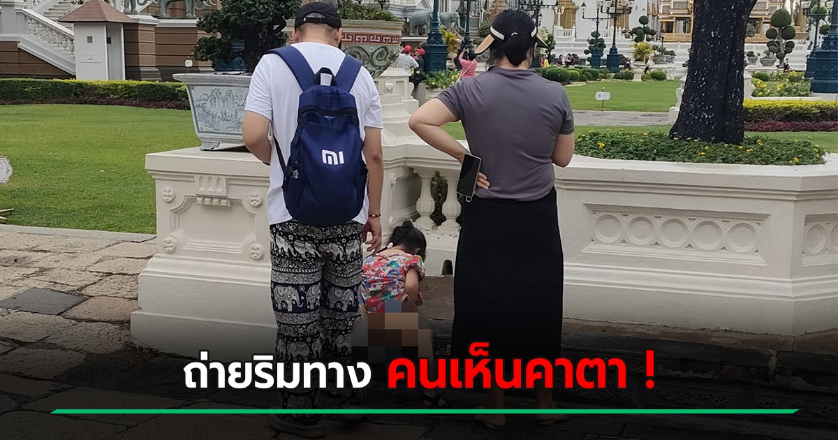 นักท่องเที่ยวทำพิษ ปล่อยให้ลูกสาวถ่ายกลางวัดพระแก้ว เห็นกันเต็มตา ใครก็ห้ามไม่ทัน !
