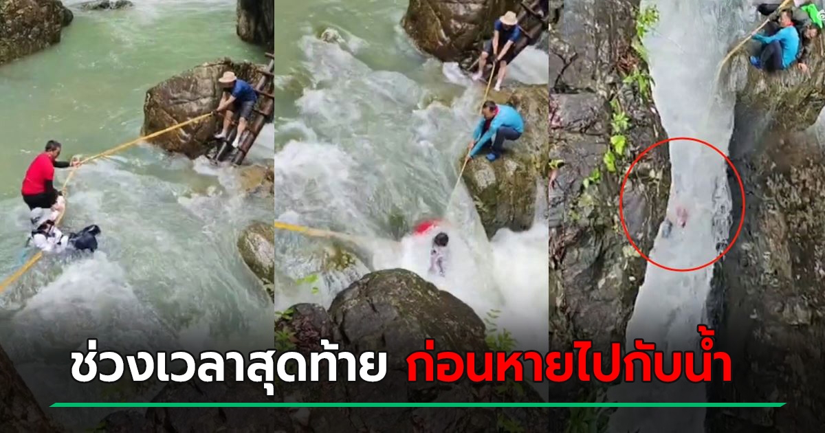 นาทีช็อก 2 นักเดินป่าสายลุย เกาะเชือกข้ามลำธาร ไม่หวั่นน้ำเชี่ยว โดนซัดหายต่อหน้า