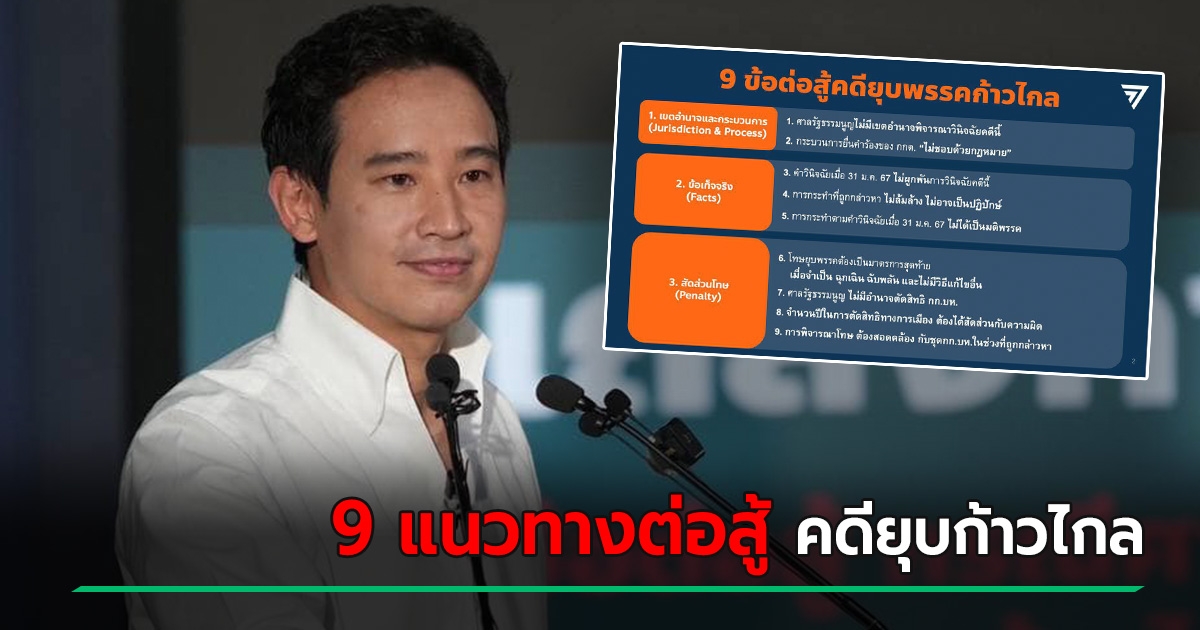 พิธา เปิด 9 ข้อ ต่อสู้คดียุบพรรคก้าวไกล ลั่น กกต. ยื่นคำร้องไม่ชอบด้วยกฎหมาย
