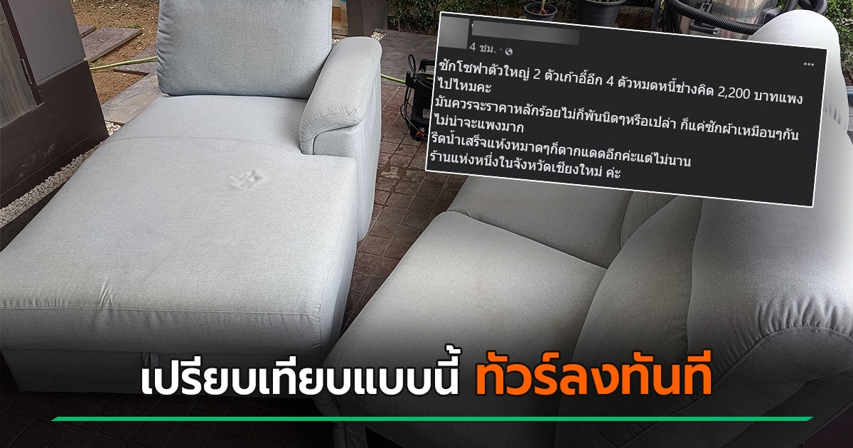เจ้าของโวย ส่งโซฟาที่บ้านให้ร้านซัก เจอคิดราคาแพงเกินไปไหม งานนี้คอมเมนต์เอกฉันท์