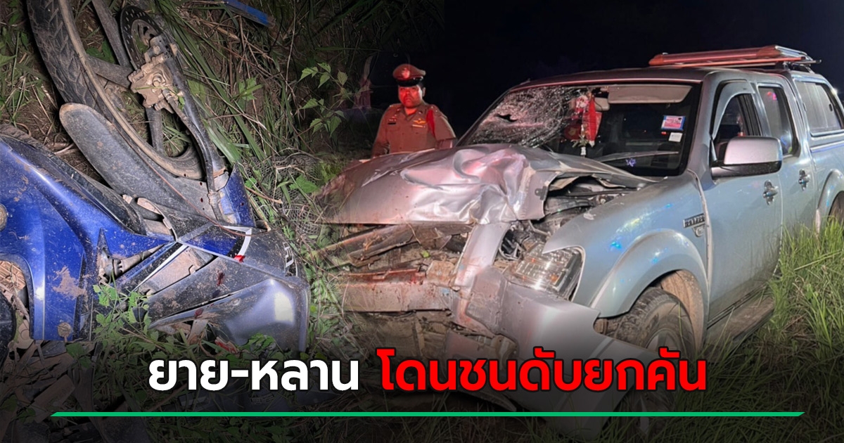 สลด.. ยายขี่รถรีบพาหลานป่วยไปหาหมอ โดนรถกระบะชนตายยกคัน 4 ศพ สุนัขอีก 1 ตัว