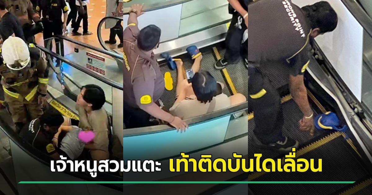 ระทึก เด็กเท้าติดบันไดเลื่อนกลางห้าง พบรองเท้าแตะถูกดูดไปติด รีบช่วยออกมา