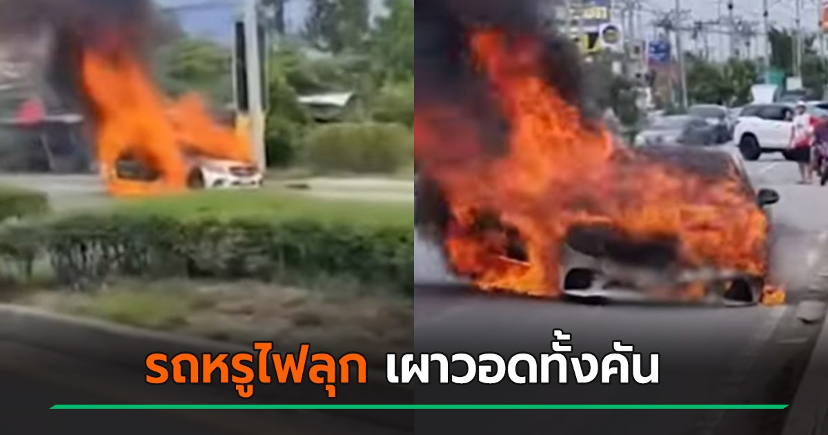 ระทึก ไฟไหม้รถหรูกลางถนน เผาวอดไม่เหลือ คนขับโดดหนีตายรอดหวุดหวิด