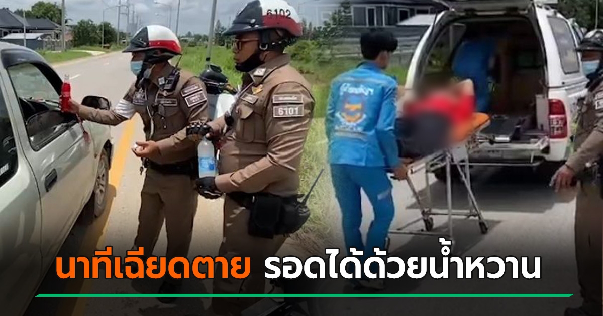 คนขับรถส่ายไป-มา ตำรวจเรียกจอด เห็นอาการเดาสาเหตุได้ ใช้น้ำหวานช่วยชีวิต