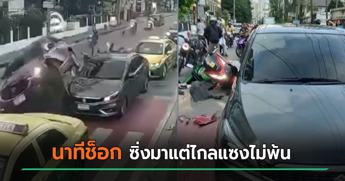 เก่งซิ่งมาแต่ไกล ชนสนั่นจนรถตะแคงกลางแยก ทำไรเดอร์ขาขาด ด้านคนขับอ้างสาเหตุ